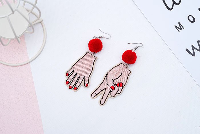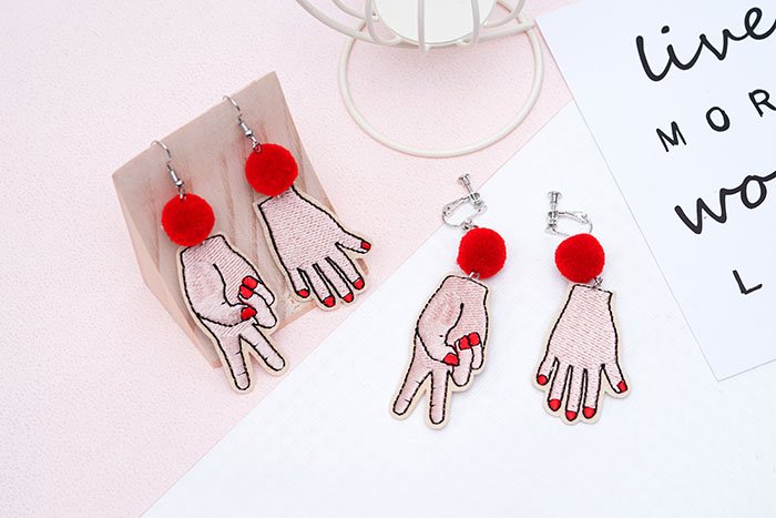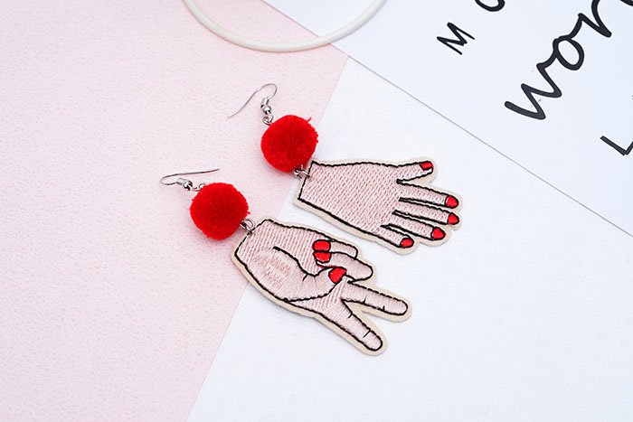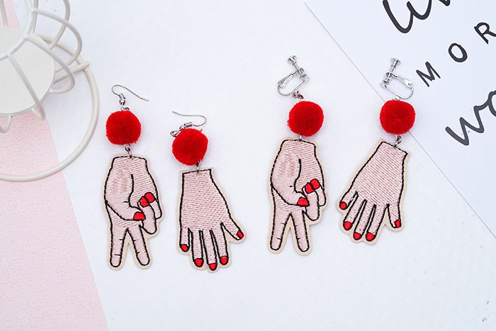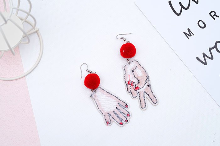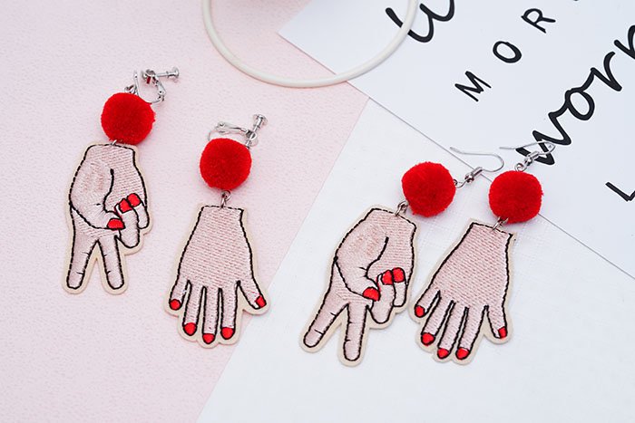 刺繡毛球剪刀與布×不對稱吊墜耳環
