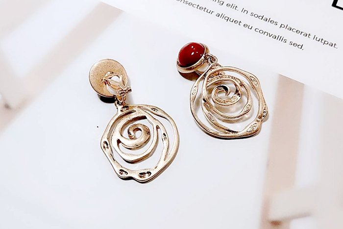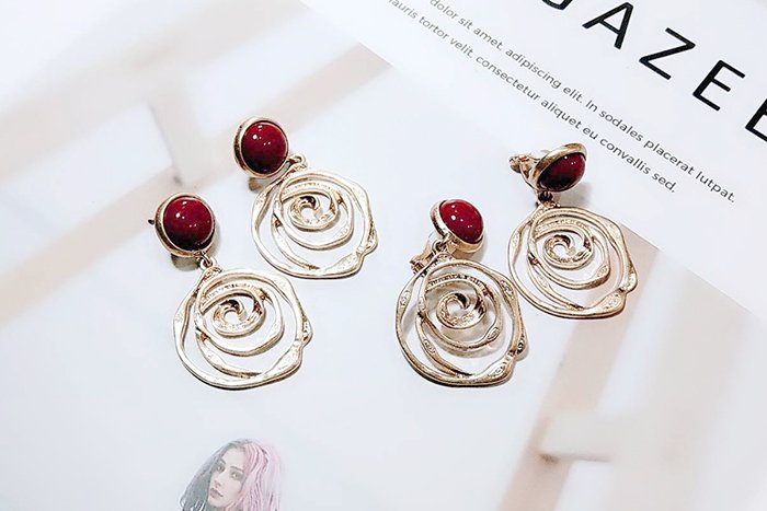 鏤空玫瑰圓珠×軟墊三角耳夾-第6張