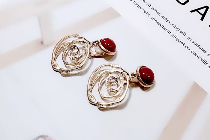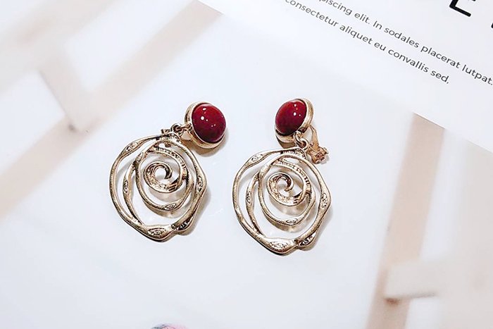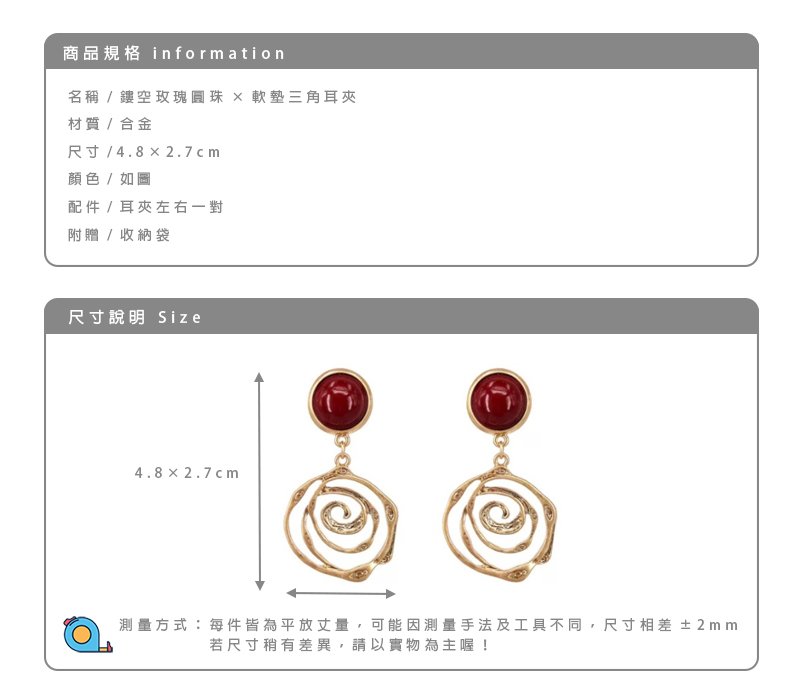 鏤空玫瑰圓珠×軟墊三角耳夾-第4張