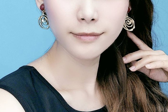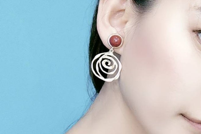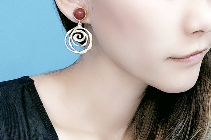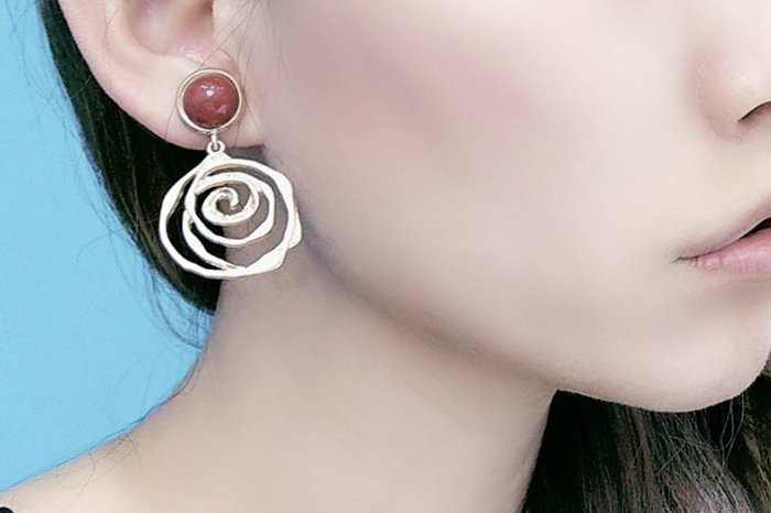 鏤空玫瑰圓珠×軟墊三角耳夾