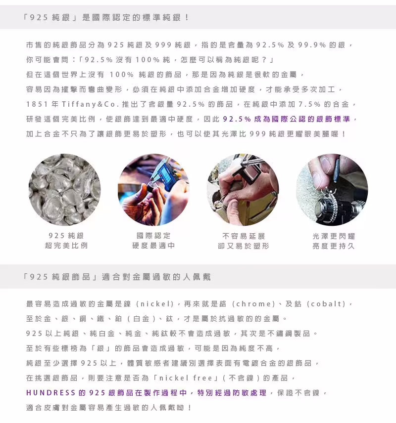 您好:我們的材質是合金電鍍925純銀包覆喔!謝謝~