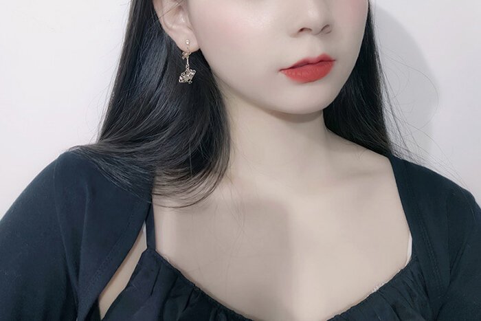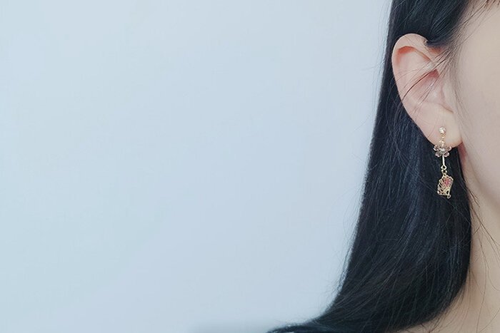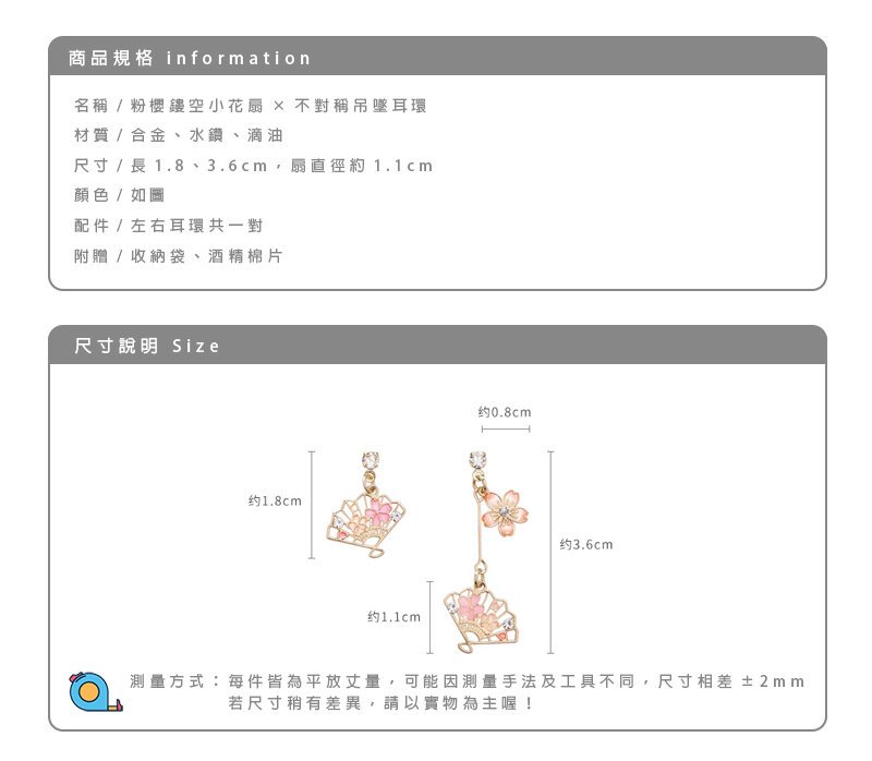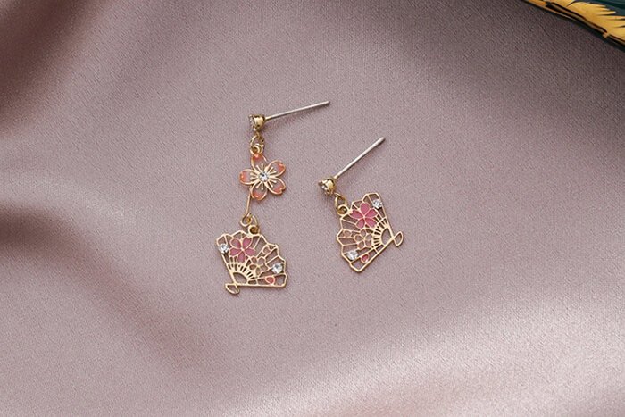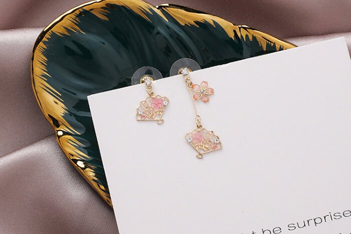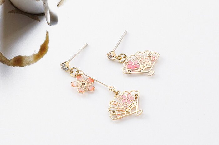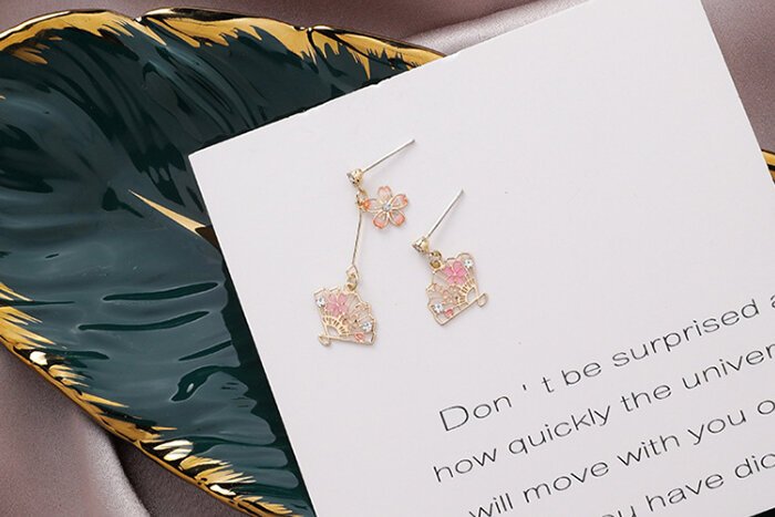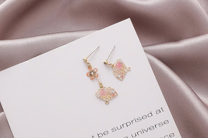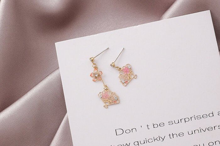- 粉櫻鏤空小花扇×不對稱吊墜耳環