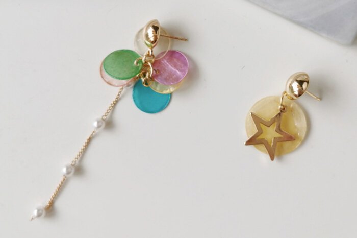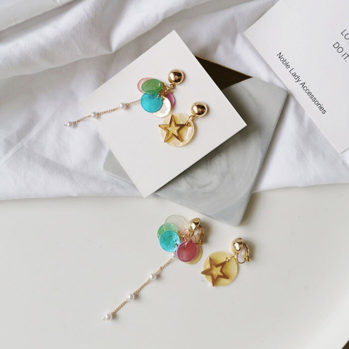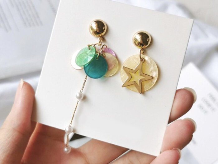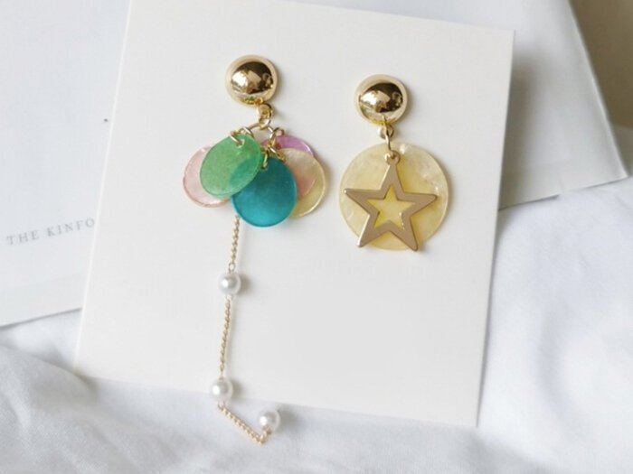 炫彩貝殼紋星星×不對稱吊隊耳環