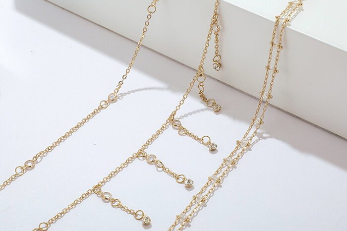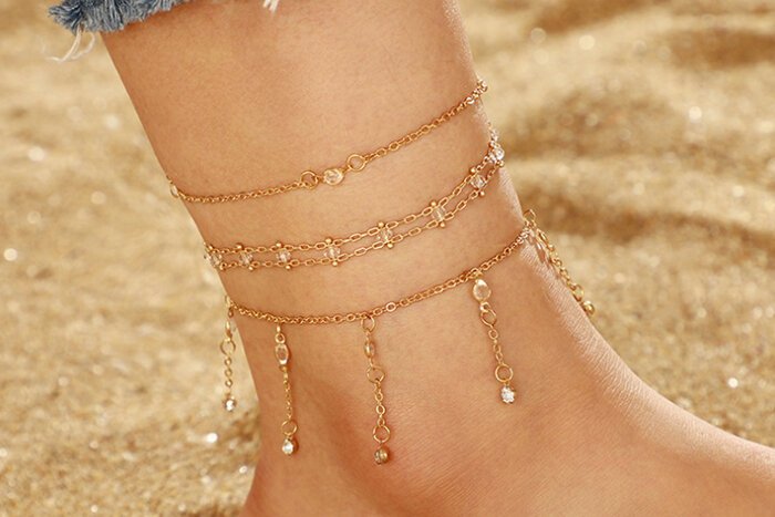 ▶名稱/橋鍊晶鑽流蘇×三套件腳鍊組