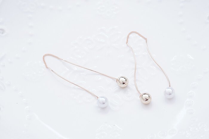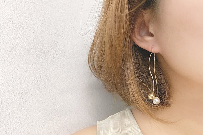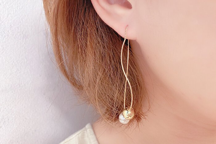 閱讀全文▶名稱/金屬珍珠波浪球×後掛式吊墜耳環