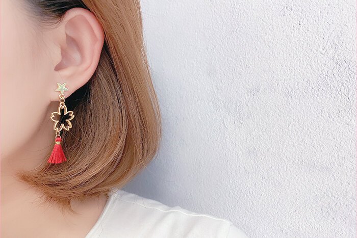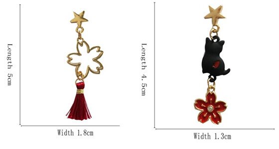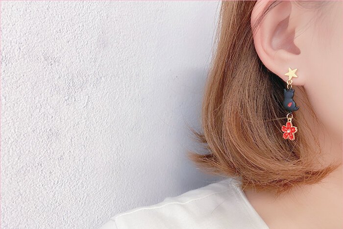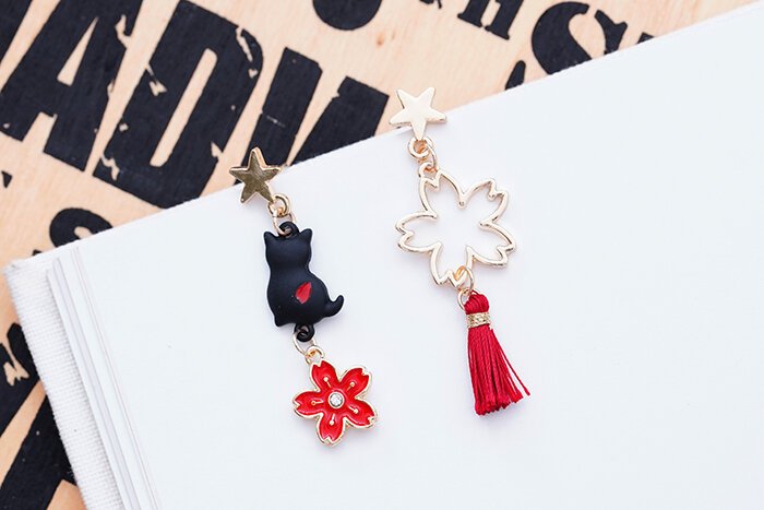 黑貓紅櫻流蘇×不對稱吊墜耳環