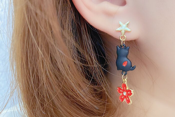 黑貓紅櫻流蘇×不對稱吊墜耳環-第4張