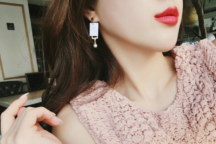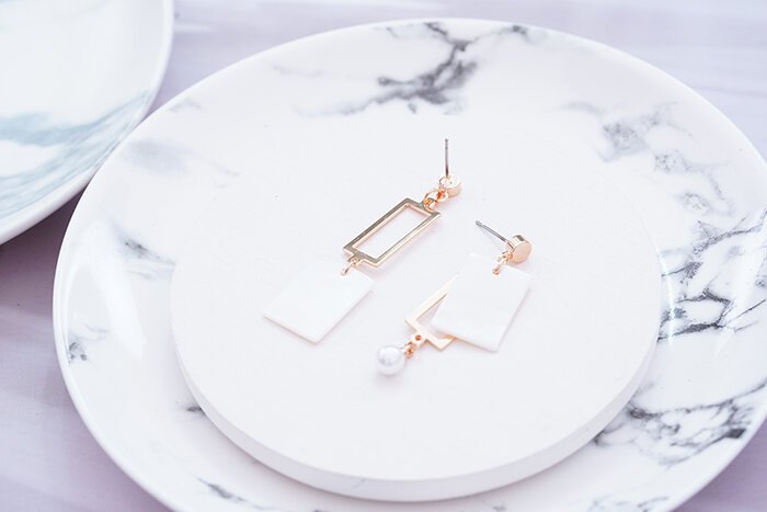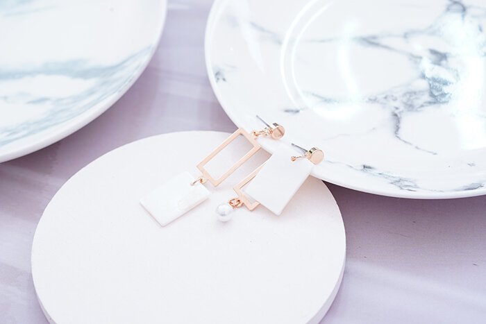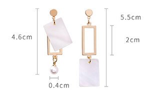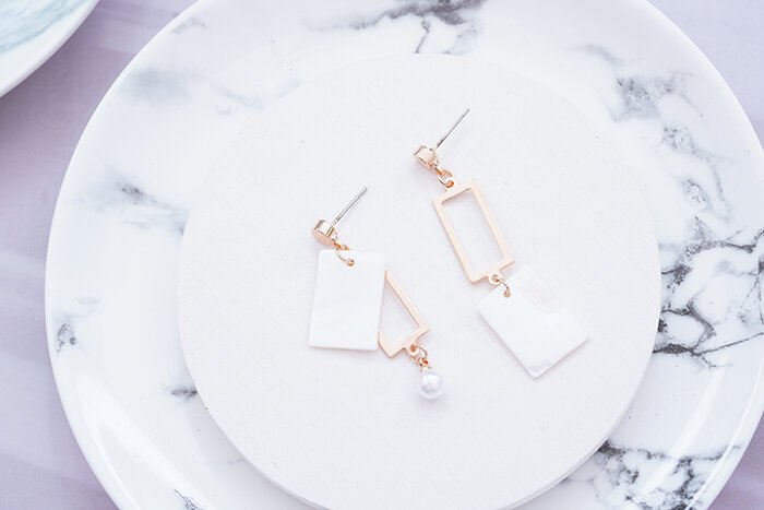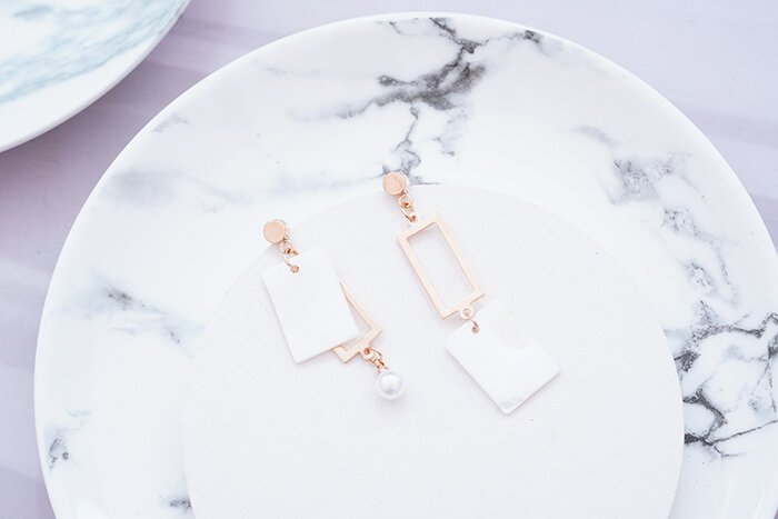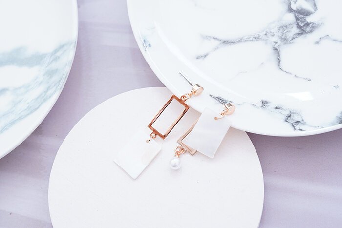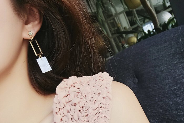 ▶名稱/長方貝殼框框×不對稱吊墜耳環