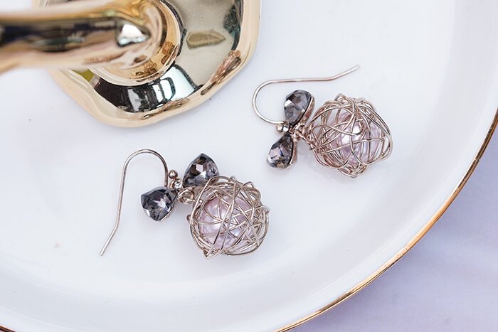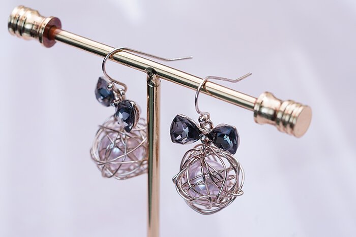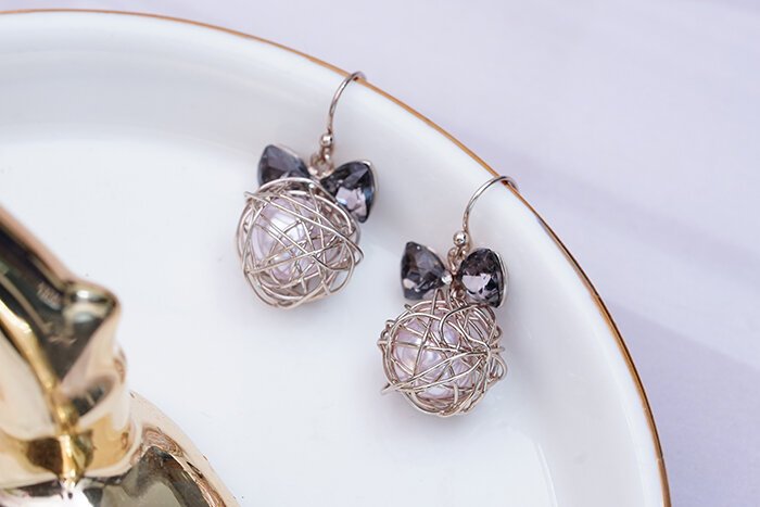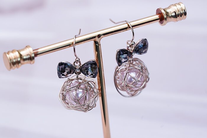 閱讀全文▶名稱/黑晶蝴蝶結繞線珍珠×吊墜耳環