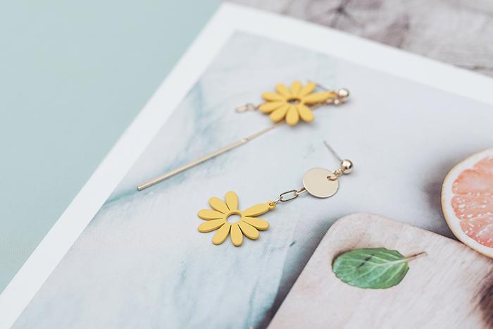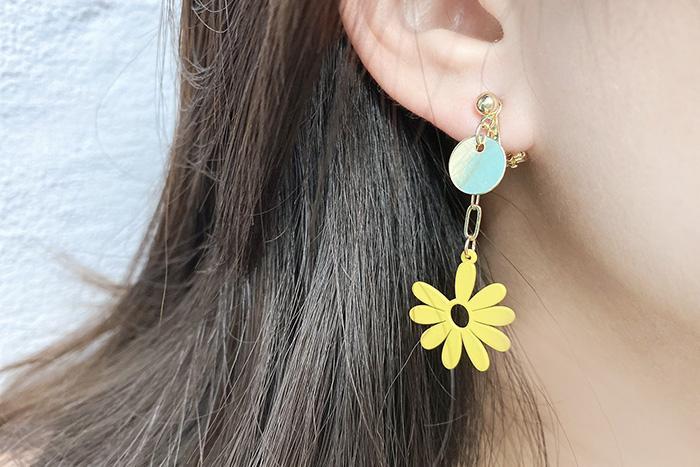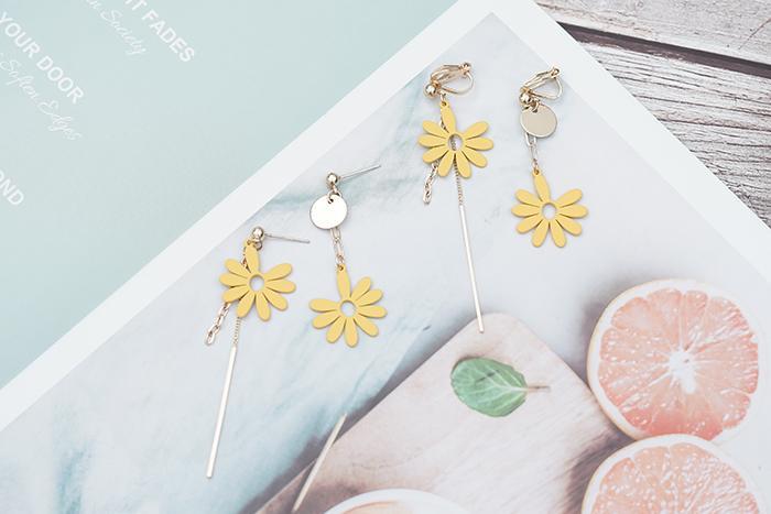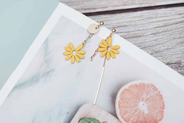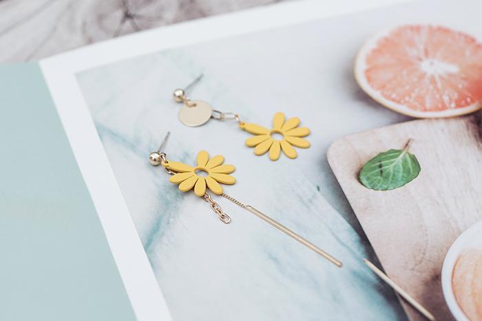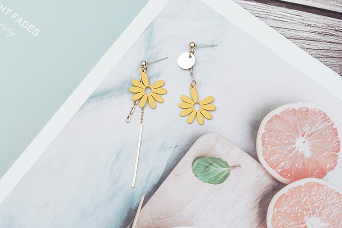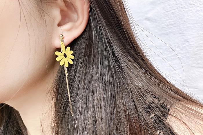 ▶名稱/小清新黃雛菊×不對稱吊墜耳環