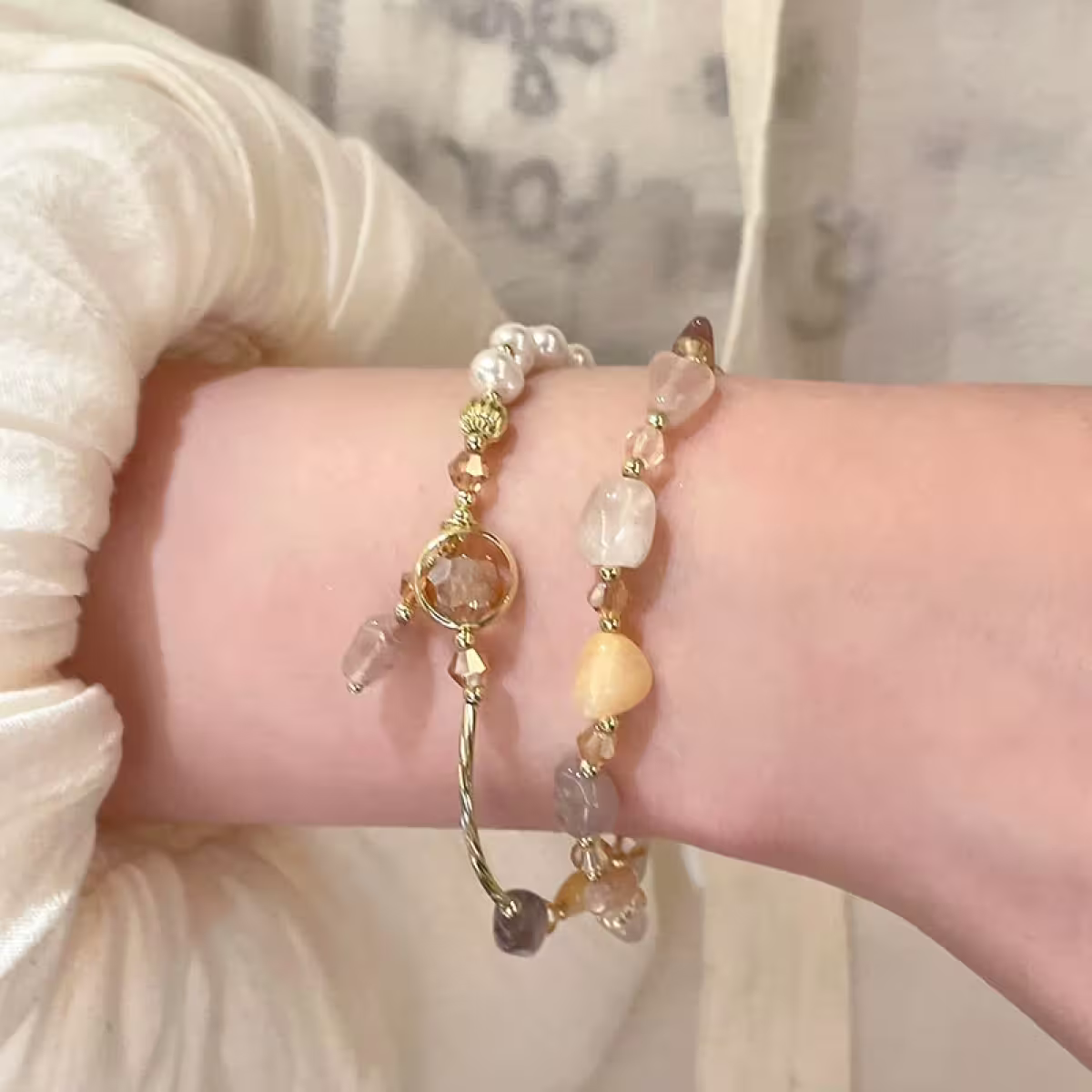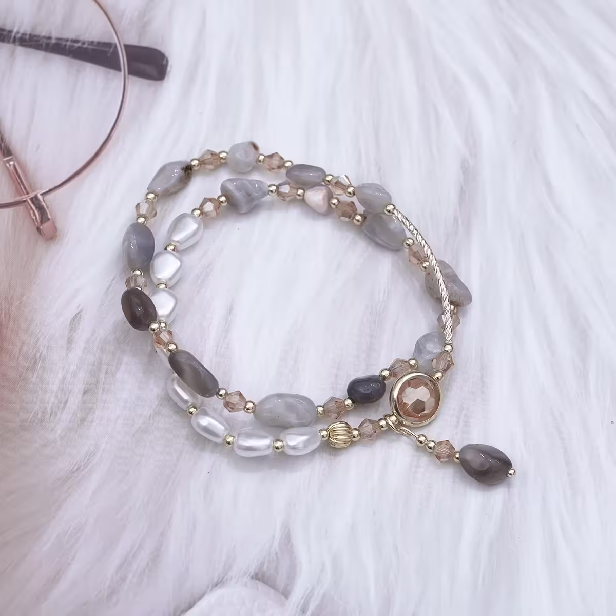 閱讀全文▶名稱/雙層巴洛克晶石珍珠×固定式串珠手鍊×共四色