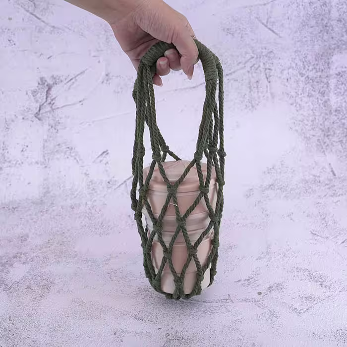 - 素色鏤空網編×飲料水瓶提袋×綠色