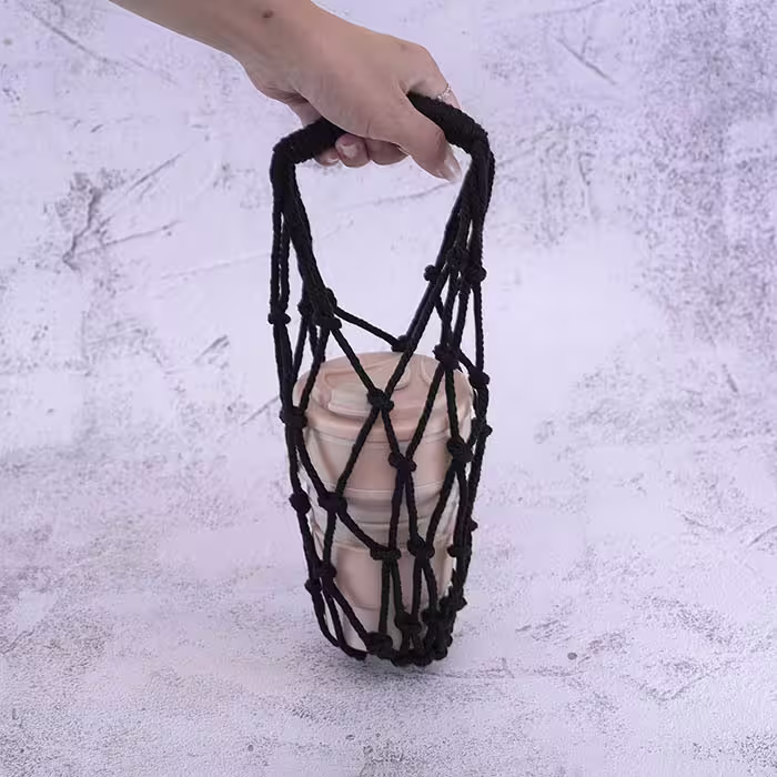 - 素色鏤空網編×飲料水瓶提袋×黑色