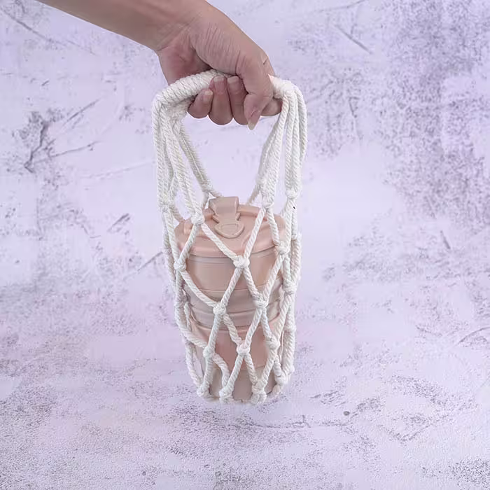 - 素色鏤空網編×飲料水瓶提袋×白色