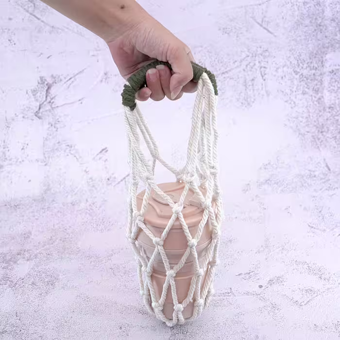 - 撞色鏤空網編×飲料水瓶提袋×綠白