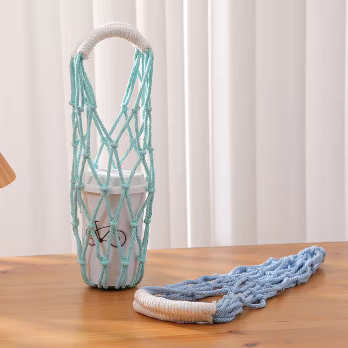 - 撞色鏤空網編×飲料水瓶提袋×白藍