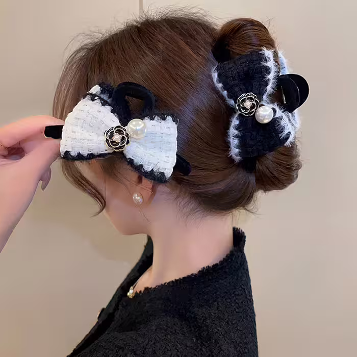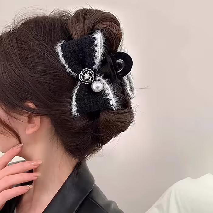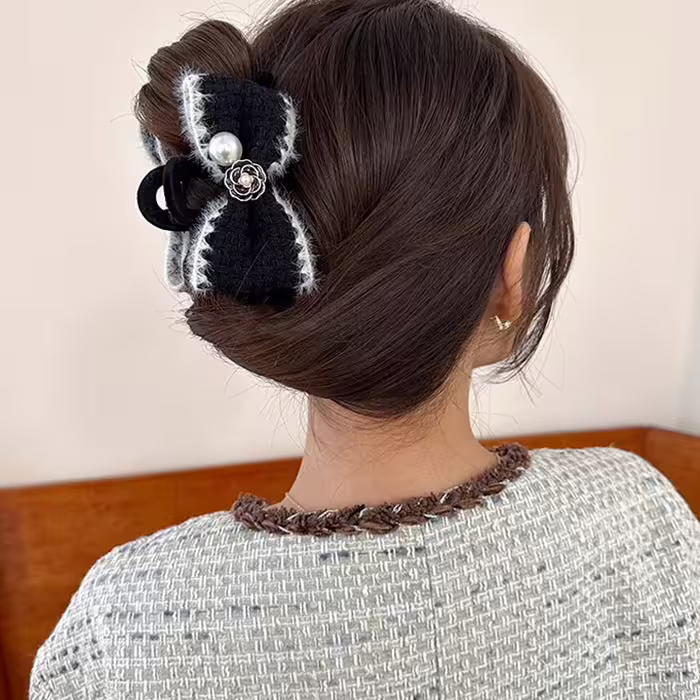 山茶花珍珠毛線編織×鯊魚夾×共二色-第1張