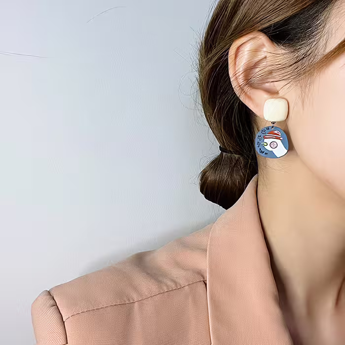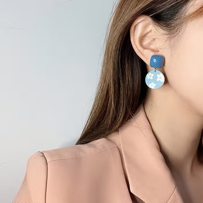 加油鴨藍色小花×不對稱吊墜耳環-第4張