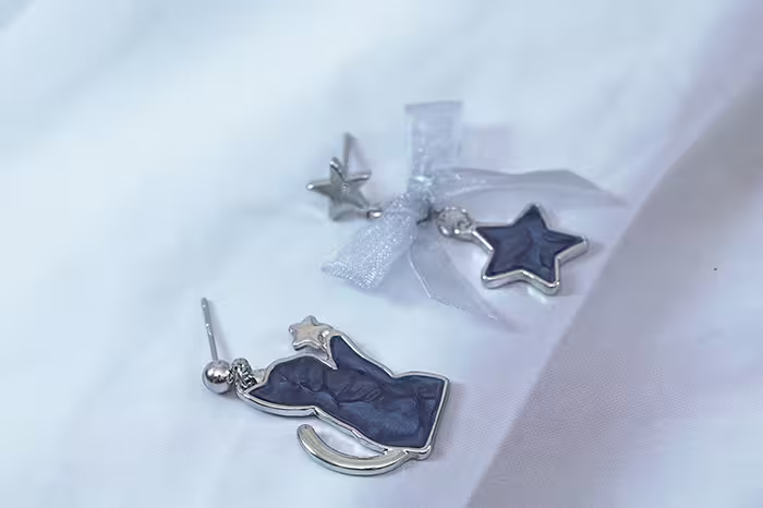 ▶名稱/炫藍貓咪蝴蝶結星星×不對稱吊墜耳環