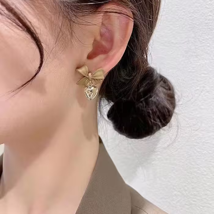 ▶名稱/棕咖領結金色愛心×蚊香盤U型耳夾