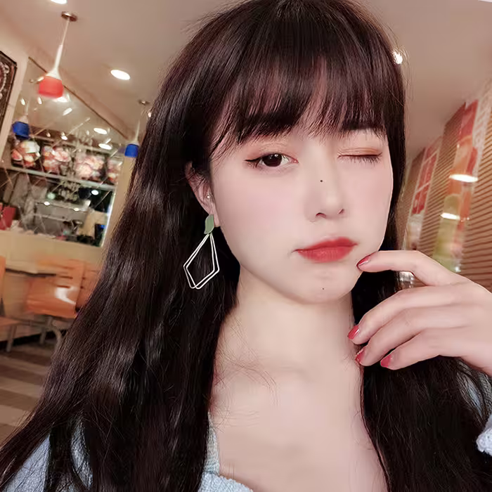 ▶名稱/綠點雙色長菱形×三角耳夾