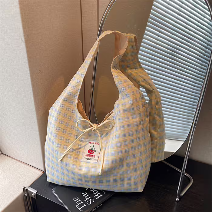 格紋蝴蝶結小蕃茄×肩背包×米黃
