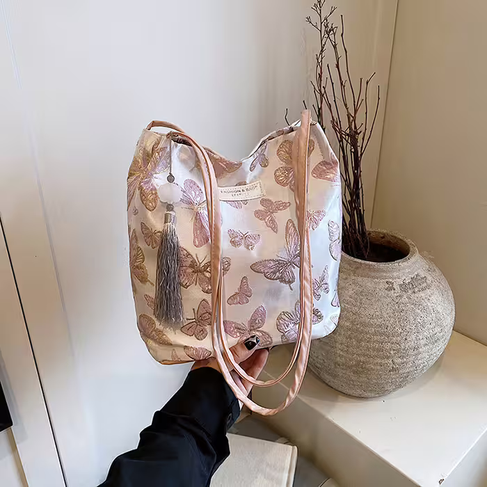 東方蝴蝶刺繡×肩背包×粉紅-第1張
