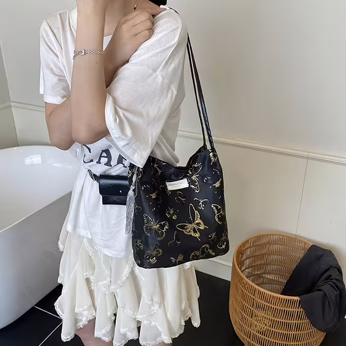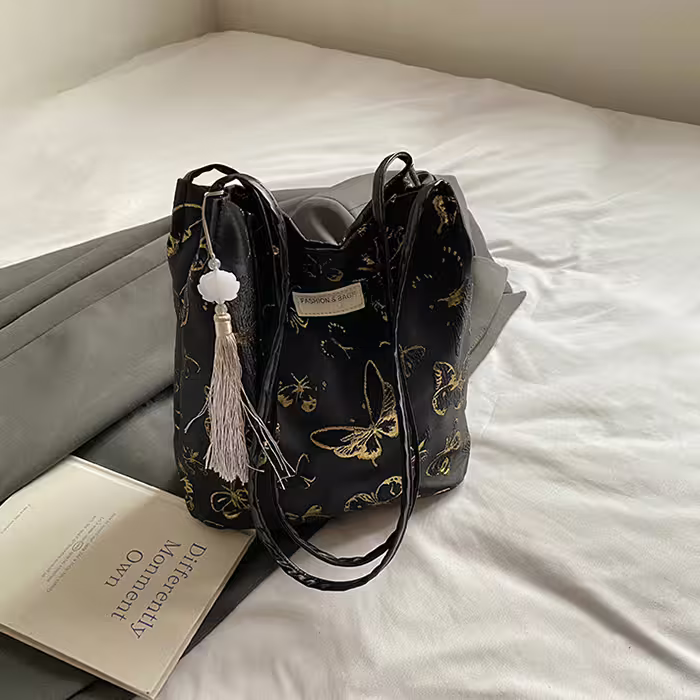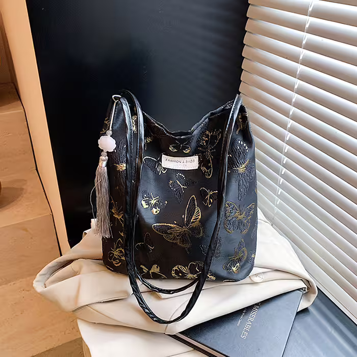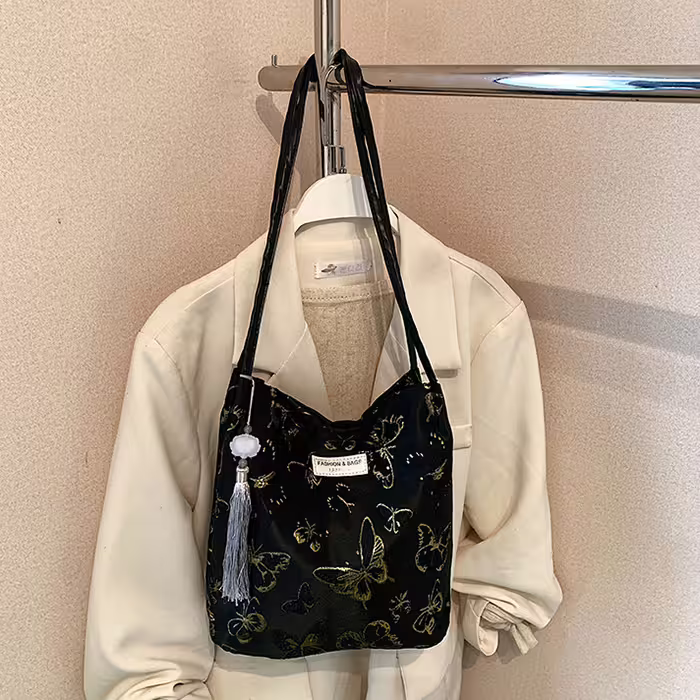 東方蝴蝶刺繡×肩背包×黑色-第1張