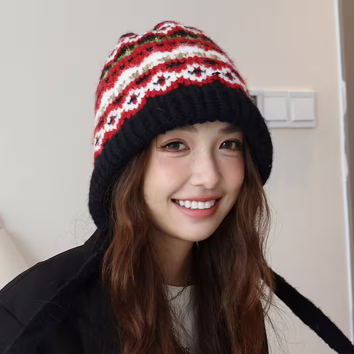 ▶名稱/費爾島毛線格紋×毛帽×棕咖