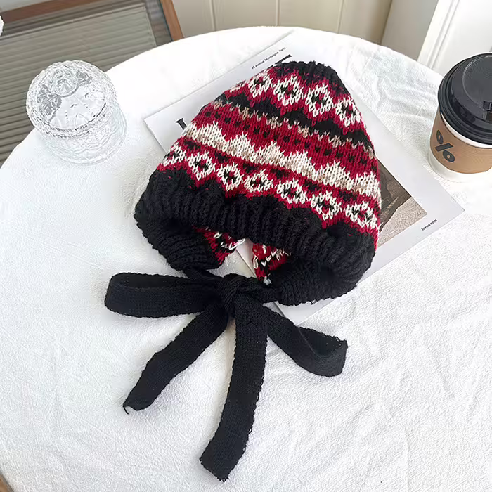 ▶名稱/費爾島毛線格紋×毛帽×黑紅