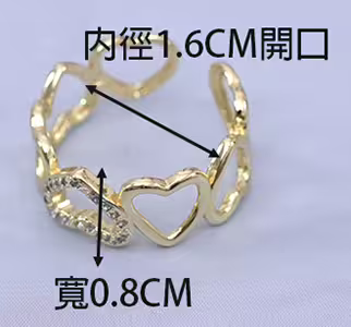▶名稱/愛心排列鏤空晶鑽×開口戒指