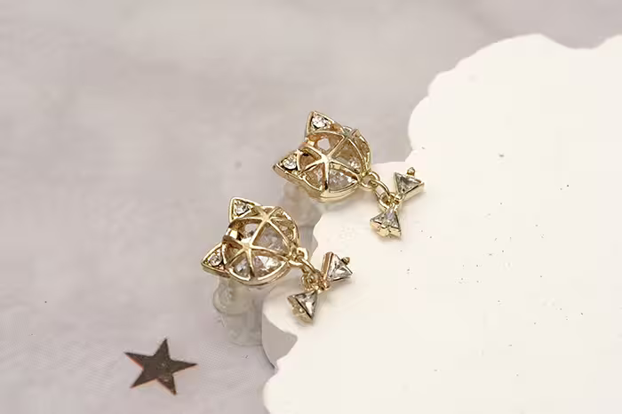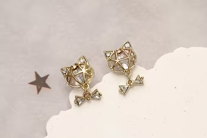 ▶名稱/立體鏤空貓咪×吊墜耳環