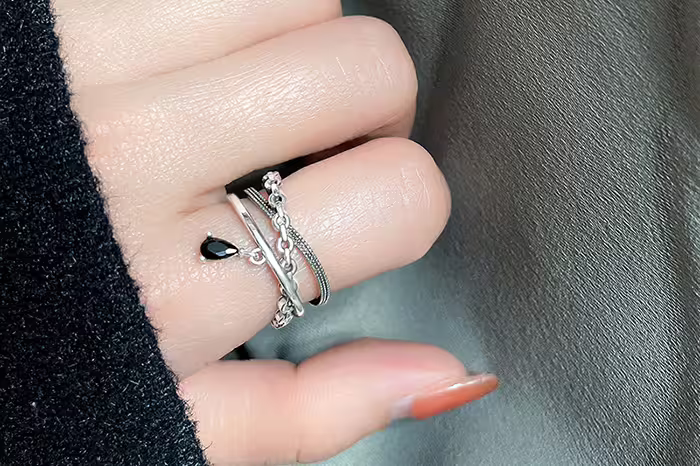 ▶名稱/多層黑眼淚×開口戒指