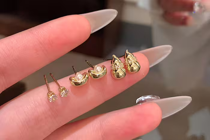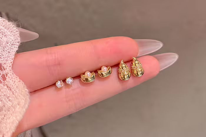 ▶名稱/葫蘆元寶晶鑽×三套件耳環組