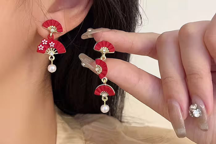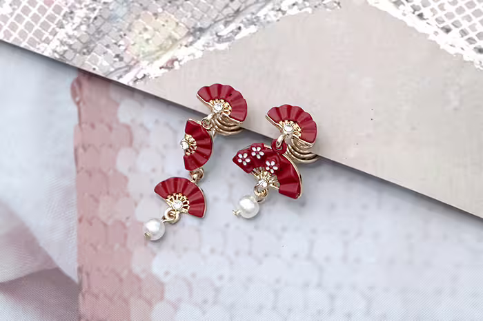 ▶名稱/梅映紅扇×不對稱蚊香盤U型耳夾
