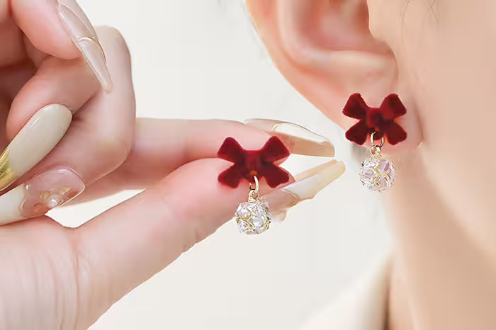 ▶名稱/植絨蝴蝶結晶鑽球×蚊香盤U型耳夾