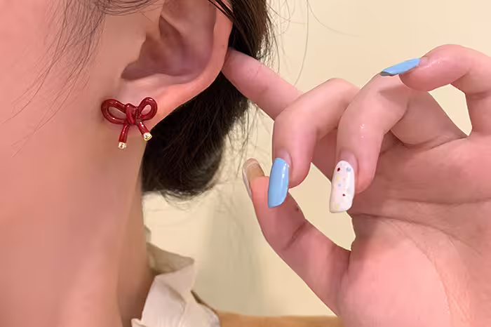 ▶名稱/紅色蝴蝶綁結×吊墜耳環