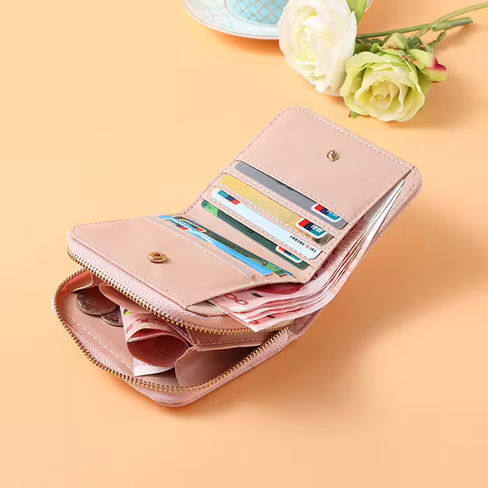 ▶名稱/時尚格紋×對折短夾×拉鍊零錢包