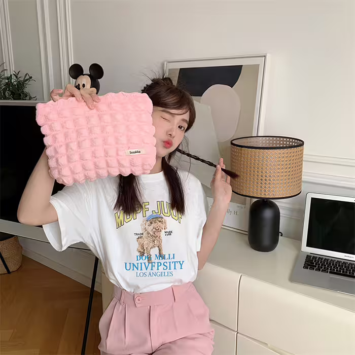 ▶名稱/泡芙雲朵包×化妝包×粉紅