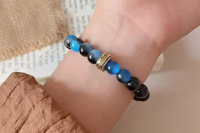 ▶名稱/黑藍虎眼石×固定式串珠手鍊