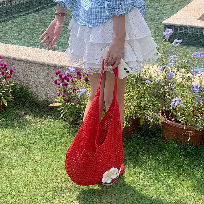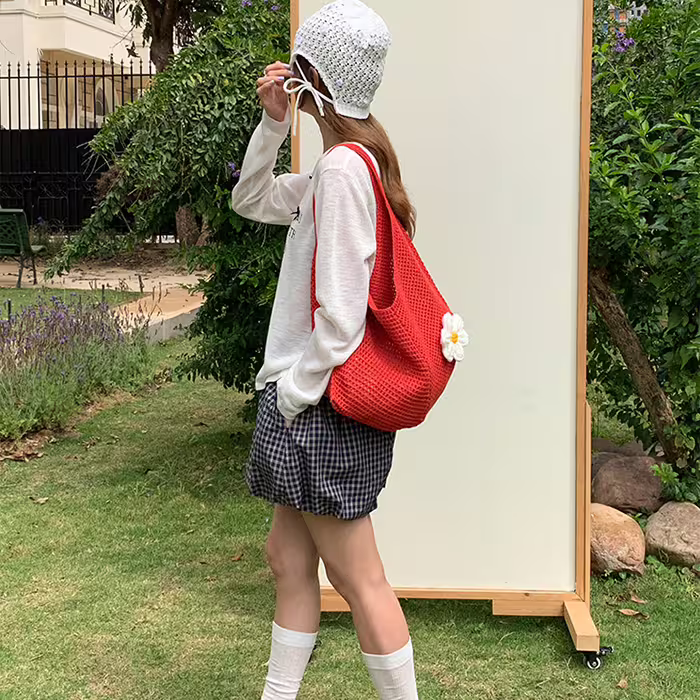 慵懶小花針織×肩背包×紅色