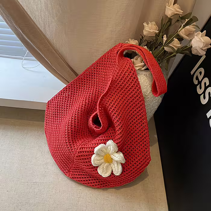 慵懶小花針織×肩背包×紅色-第1張